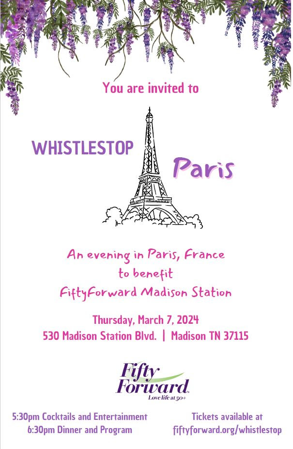 Bonjour, mes amis! Join us at the 2024 Whistlestop Fundraiser. Destination: Paris!