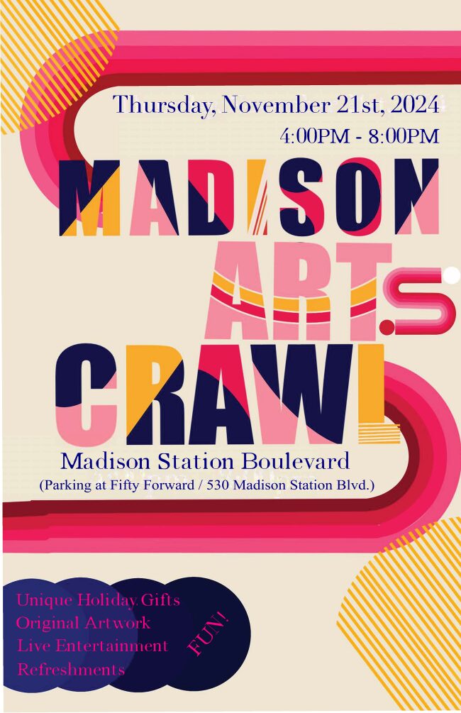 See art, crafts, and participate in activities at multiple locations within walking distance, including FiftyForward, Harken Hall, Amqui Station, the Madison Branch Library, Madtown Coffee, Pinky Ring Pizza, and more!