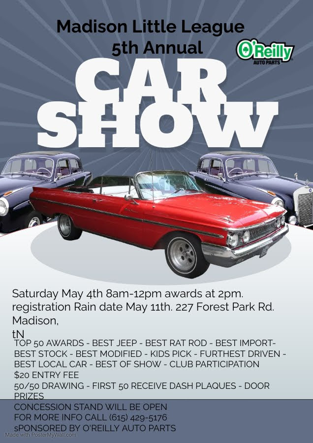 Enter your car for only $20 for one of 61 trophies or come see the entries for free. The concession stand will be open for business.