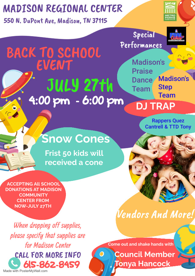 Madison’s Back to School event at Madison Regional Center on July 27th.