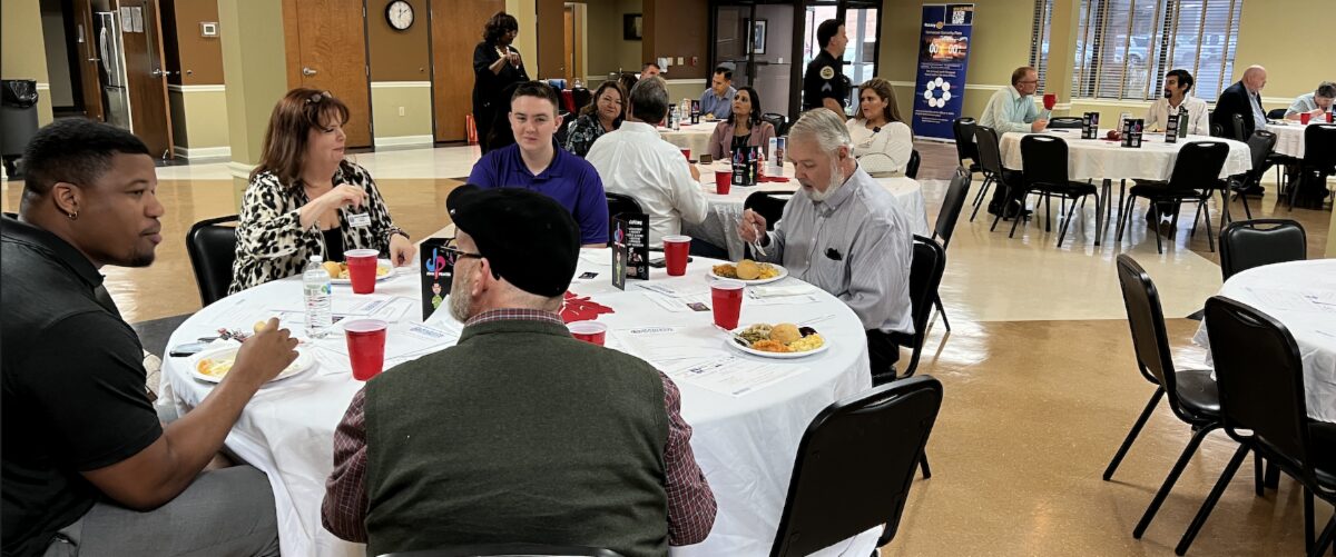 Networking at 11:30 a.m., food opens at 11:45 a.m., and the program starts at noon.